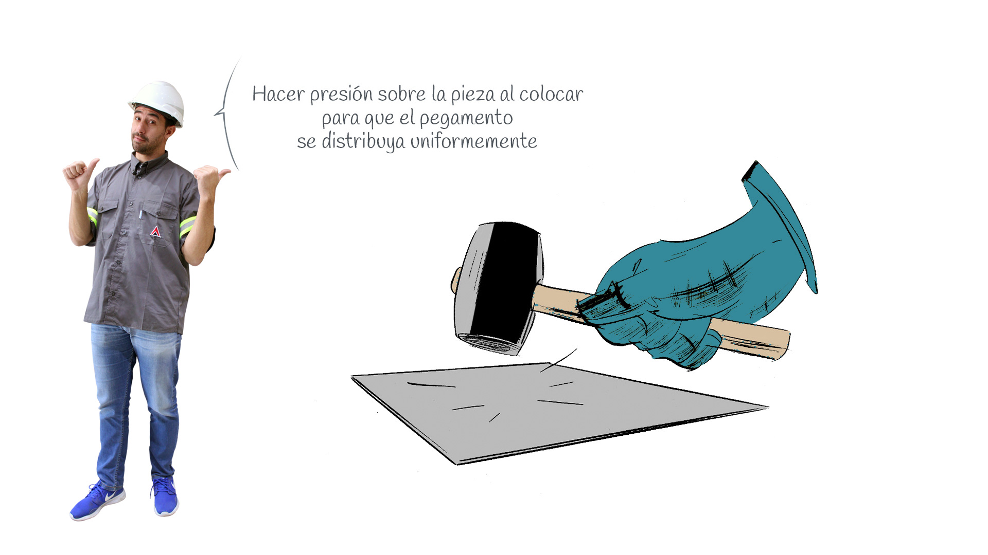 En cerámicos de medidas mayores a 40 cm de lado se recomienda incrementar la altura de los dientes de la llana de 15 x 15 mm. hasta lograr por lo menos el 75 % de superficie cubierta de la base.