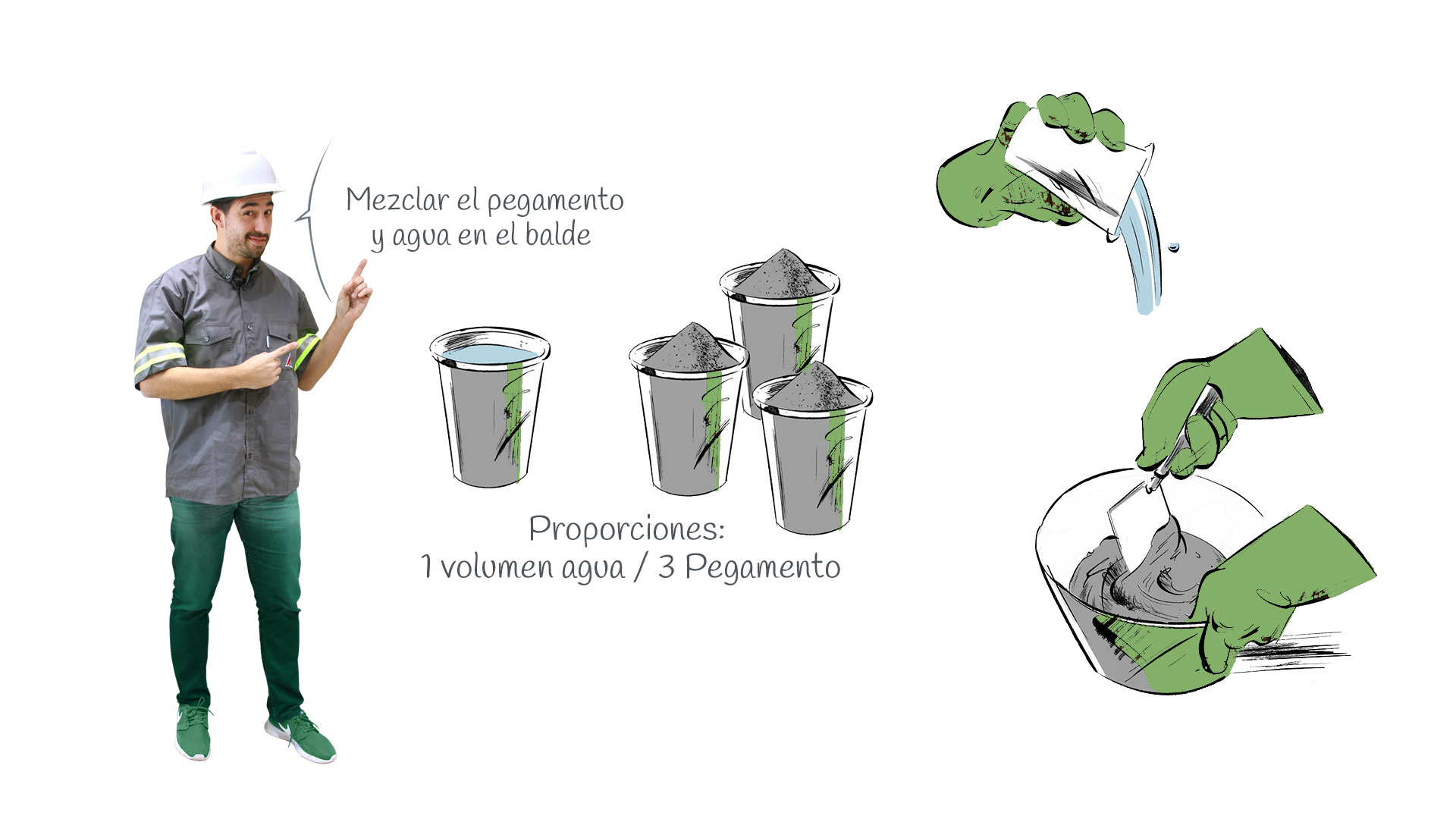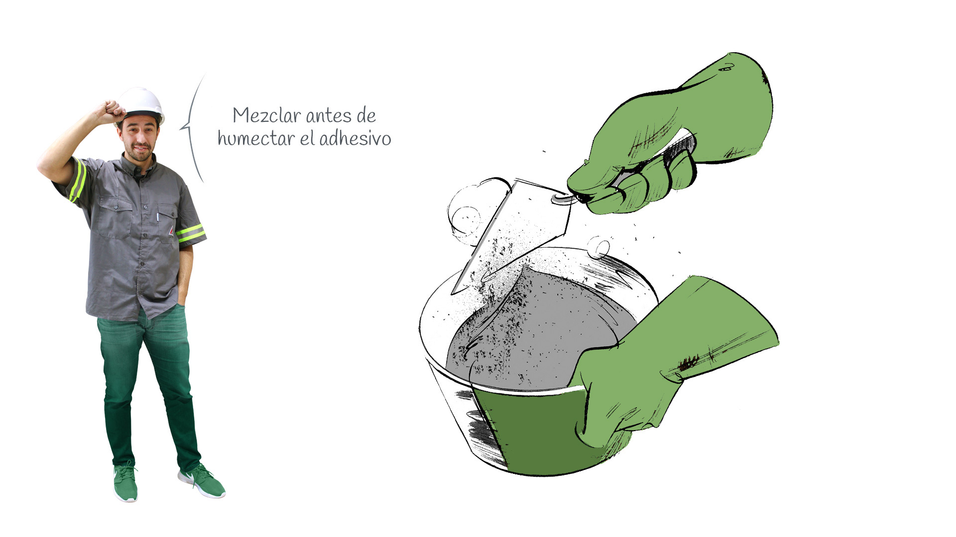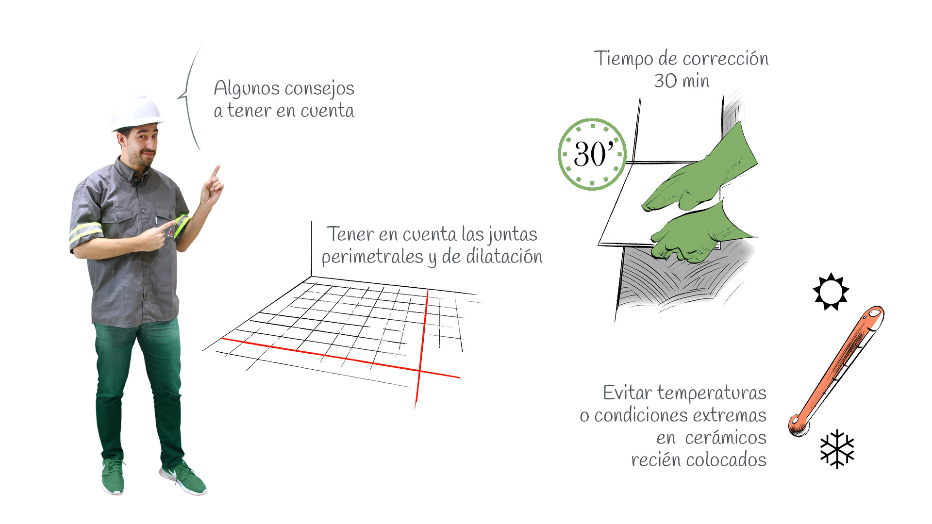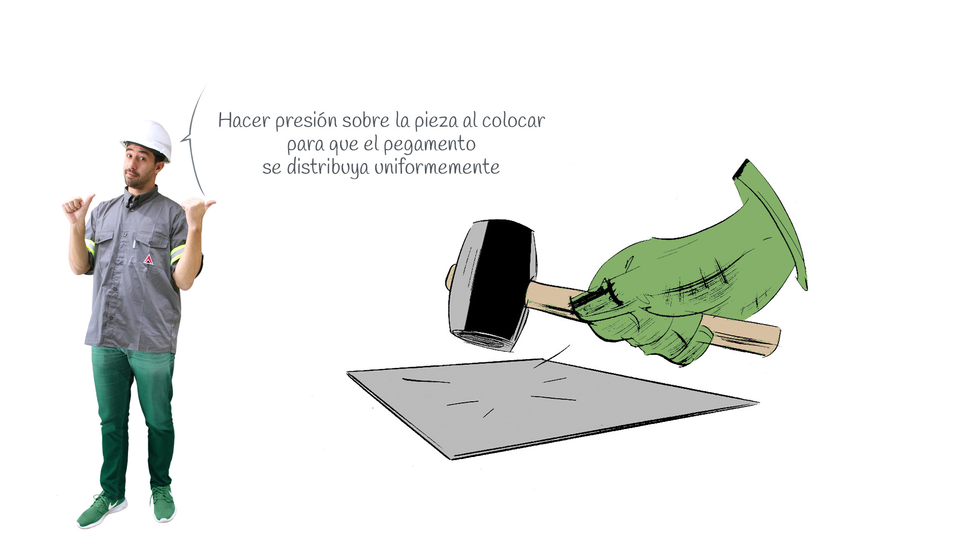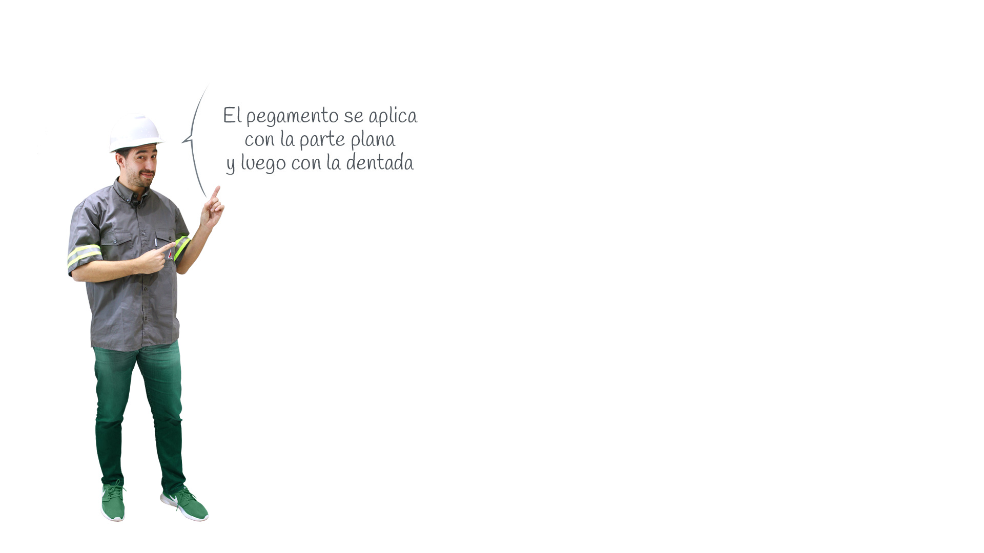 En cerámicos de medidas mayores a 40 cm de lado se recomienda incrementar la altura de los dientes de la llana de 15 x 15 mm. hasta lograr por lo menos el 75 % de superficie cubierta de la base.